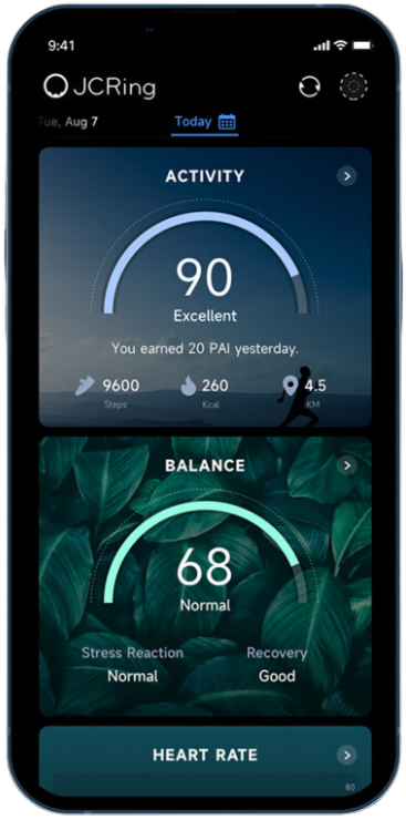 2301B is a smart health ring which can monitor multiple body vital signs all day and night.